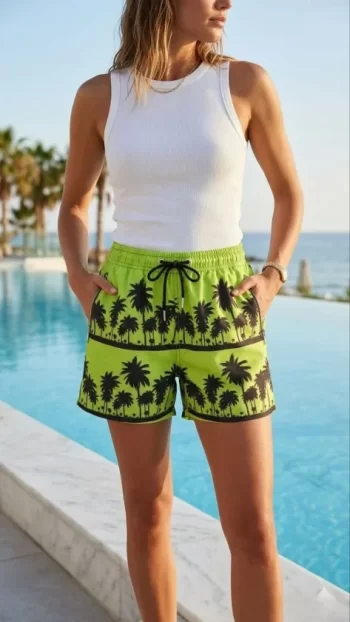 Deniz Şortu Fermuarlı Cepli File Astarlı Hızlı Kuruyan Premium – Neon Yeşili
