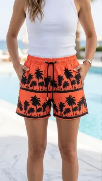 Deniz Şortu Fermuarlı Cepli File Astarlı Hızlı Kuruyan Premium – Turuncu