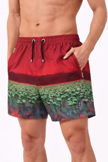 Erkek Deniz Şortu Fermuarlı Cepli File Astarlı Hızlı Kuruyan Premium – Kırmızı