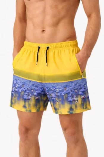 Erkek Deniz Şortu Fermuarlı Cepli File Astarlı Hızlı Kuruyan Premium – Sarı