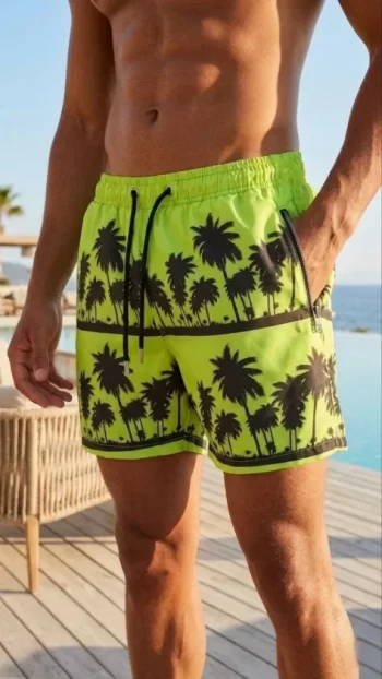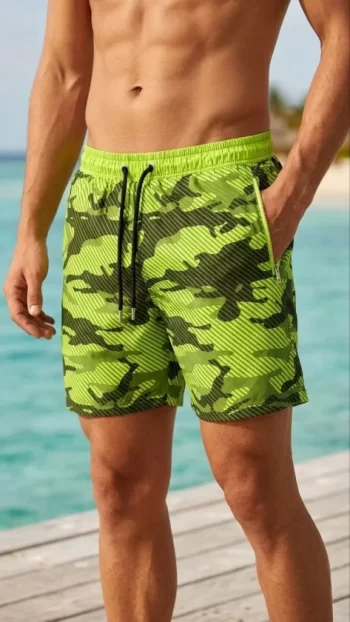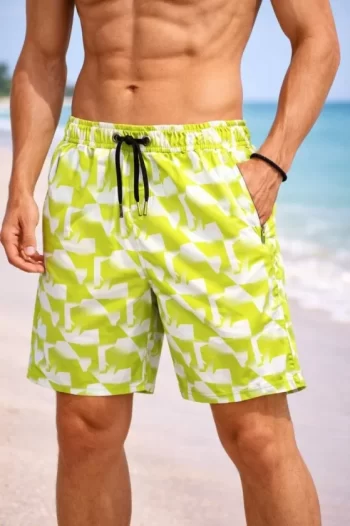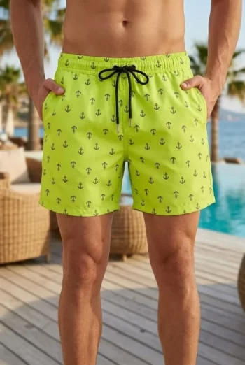 Erkek Deniz Şortu Fermuarlı Cepli File Astarlı Hızlı Kuruyan Premium – Neon Yeşili