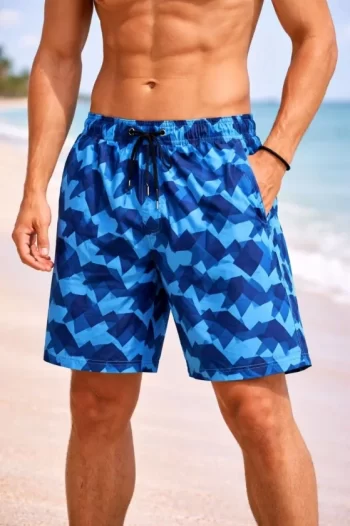 Erkek Deniz Şortu Fermuarlı Cepli File Astarlı Hızlı Kuruyan Premium – Mavi