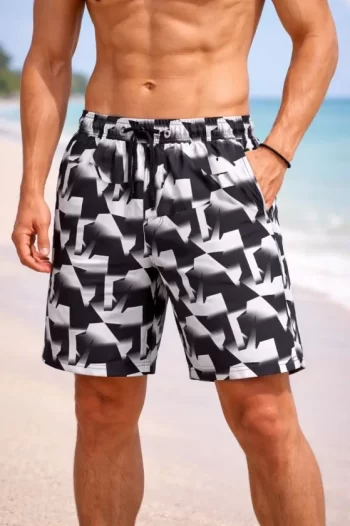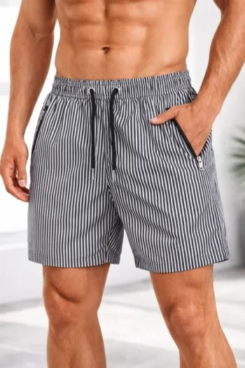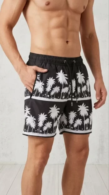 Erkek Deniz Şortu Fermuarlı Cepli File Astarlı Hızlı Kuruyan Premium – Siyah