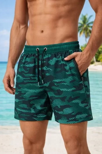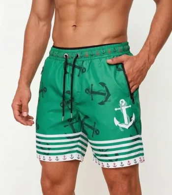 Erkek Deniz Şortu Fermuarlı Cepli File Astarlı Hızlı Kuruyan Premium – Su Yeşili