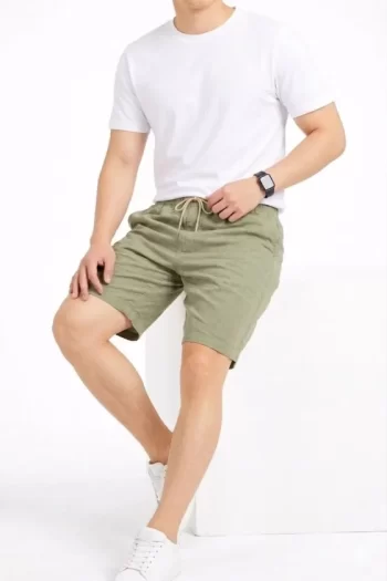 Erkek Keten Kumaş Cepli Rahat Kesim Bel Lastikli Şort – Mint Yeşili