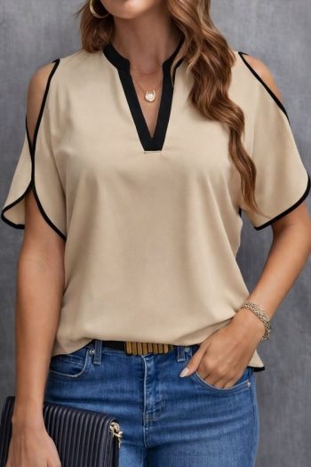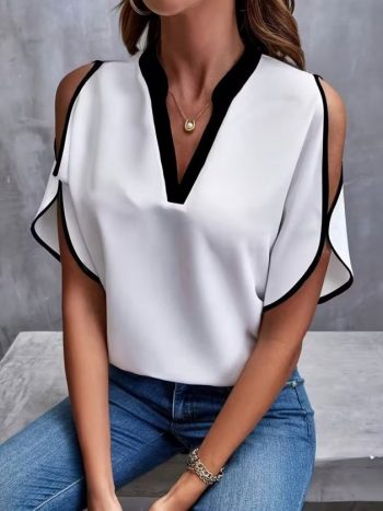 Kadın Kısa Kollu V Yakalı Ithal Krep Bluz