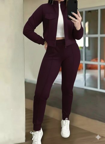 Modal Kadın Kombin Şıklığı Uzun Kollu önden Fermuarlı Kısa Mor Ceket Ve Pantolon İkili Takım