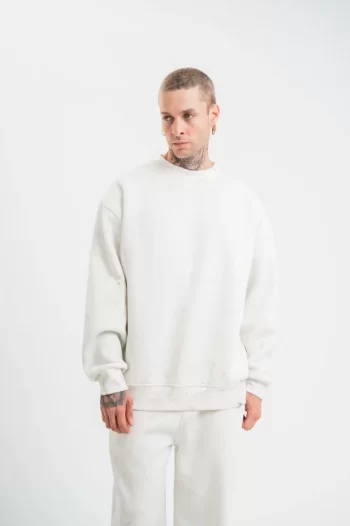 Unisex Günlük Stil Beyaz Uzun Kol Yarım Farmuarlı Yakalı Basic Sweatshirt