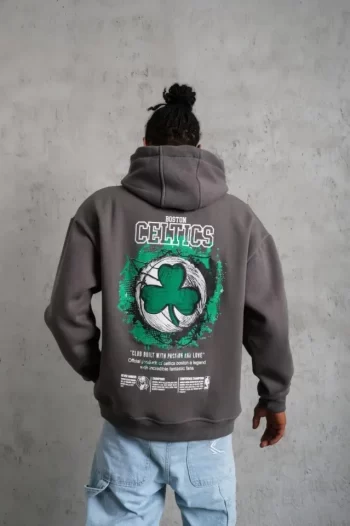Baskılı Erkek Sokak Stili Gri Kapüşonlu Sweat
