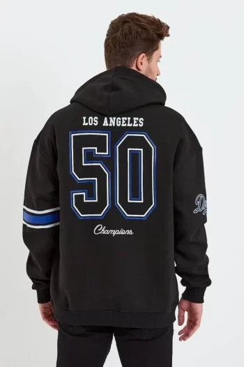 Baskılı Erkek Sokak Stili Siyah Kapüşonlu Üç İplik Oversize Sweatshirt