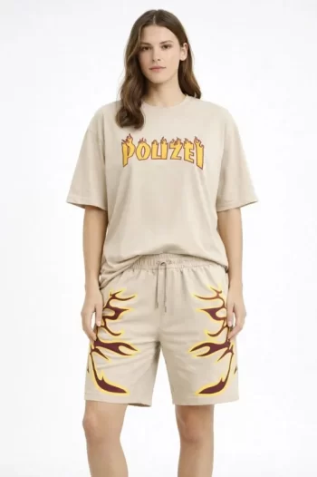 Baskılı Kadın Bej Bej Şort Takım Cepli Şort Yazlık Rahat Günlük Kombin Oversize Tişört