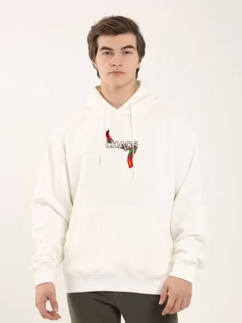Desenli Kadın Günlük Stil Beyaz Üç İplik Grafik Kapüşonlu Sweatshirt