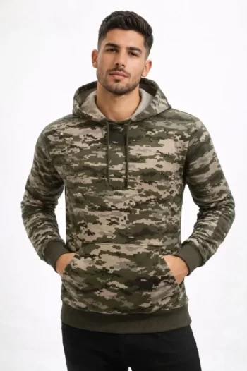 Desenli Erkek Sokak Stili Kamuflaj Kamuflaj 2 İplik 4 Mevsim Kapüşonlu Kanguru Cepli Hoodie Sweatshirt