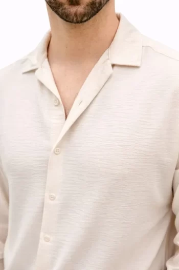 Erkek Aerobin Kumaş Oversize 4 Mevsim Uzun Kollu Rahat Kalıp Gömlek – Bej
