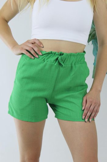 Kadın Rahat Kullanım Keten Yeşil Şort
