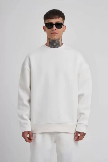 Kadın Sokak Stili Beyaz Kapüşonlu Üç İplik Penye Basic Sweatshirt