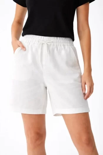 Keten Kumaş Cepli Rahat Kesim Bel Lastikli Şort – Beyaz