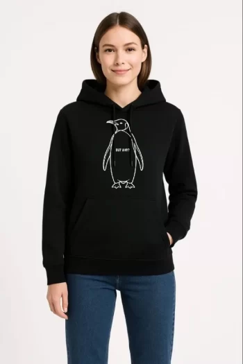 - Kadın Salaş Stil Siyah Nihilist Penguen Temalı Oversize Bisiklet Yaka Tişört
