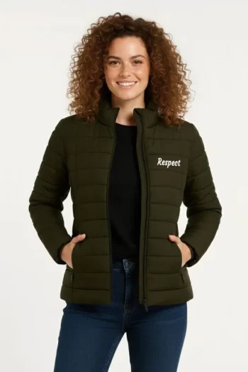 Baskılı Kadın Modern Stil Saks Mavisi Mikro Su İtici Kapitone Astarlı Fermuarlı Bomber Mont