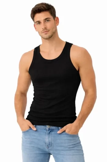 Erkek Fitilli Likralı Kaşkorse Atlet Vücuda Oturan Basic Şıklık – Siyah