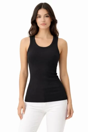 Fitilli Likralı Kaşkorse Atlet Vücuda Oturan Basic Şıklık – Siyah