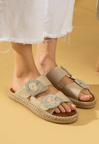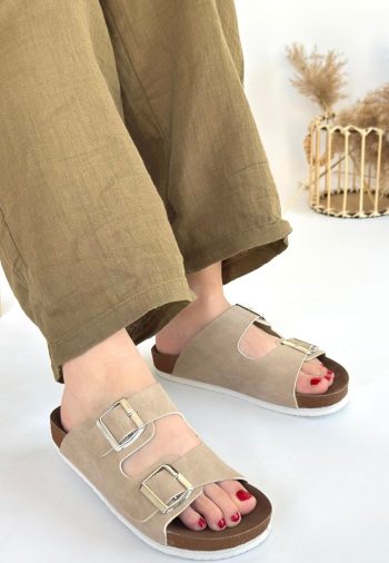 Nubuk Kadın Konforlu Adım Hertas Bej Tokalı Terlik