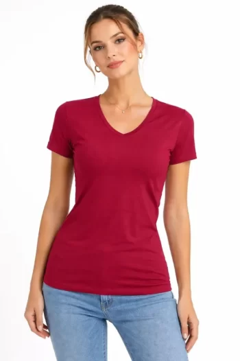 T-Shirt V Yaka Slim Fit Likralı Tişört Günlük Basic Body – Bordo