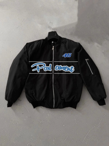 Baskılı Kadın Şehir Stili Siyah Tam Kalıp Uzun Kol Bomber Ceket