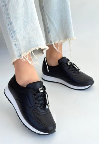 - Cilt Kadın Konforlu Adım Finna Siyah Bağcıklı Spor Ayakkabı
