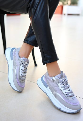 Cilt Kadın Konforlu Adım Aleh Gri Bağcıklı Spor Ayakkabı