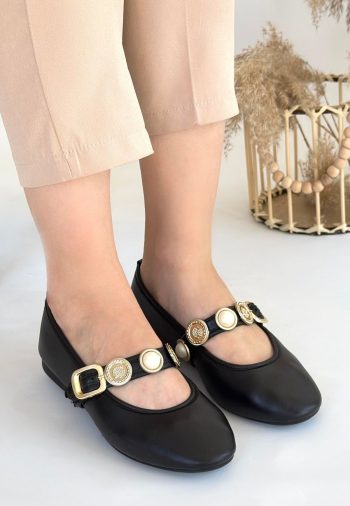 Cilt Kadın Konforlu Adım Atnis Siyah Babet Ayakkabı