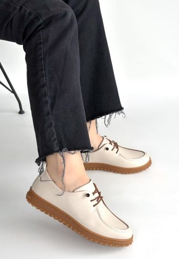 Guot Bej Cilt Bağcıklı Babet Ayakkabı