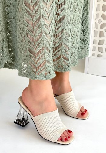 - Kadın Konforlu Adım Evra Ten Triko Topuklu Terlik