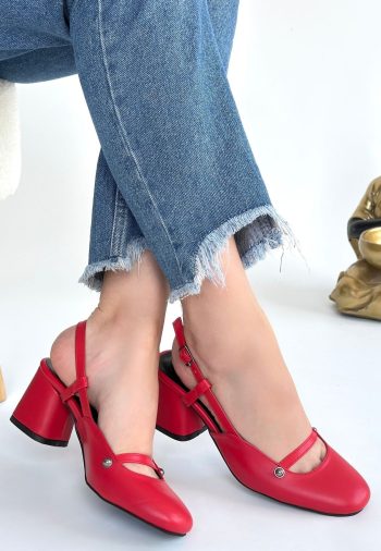 Cilt Kadın Konforlu Adım Jecci Kırmızı Topuklu Ayakkabı