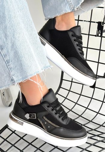 Cilt Kadın Konforlu Adım Junda Siyah Bağcıklı Spor Ayakkabı