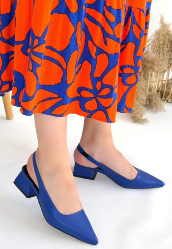 Cilt Kadın Konforlu Adım Mulen Mavi Topuklu Ayakkabı