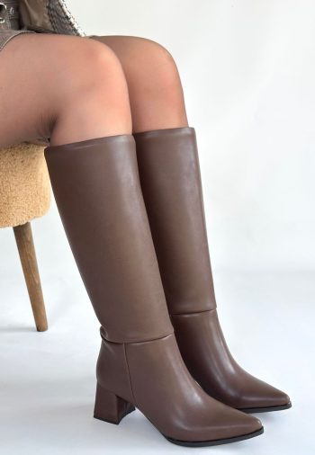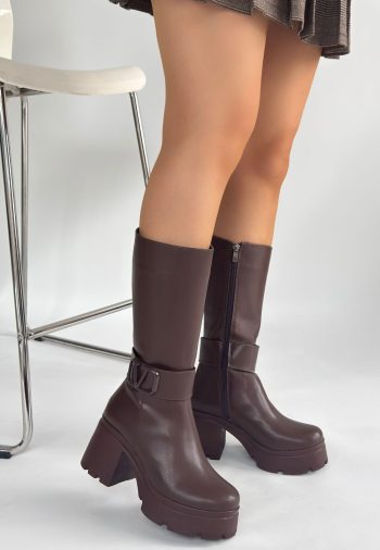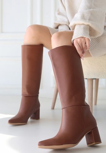 Cilt Kadın Modern Stil Moki Kahverengi Topuklu Çizme