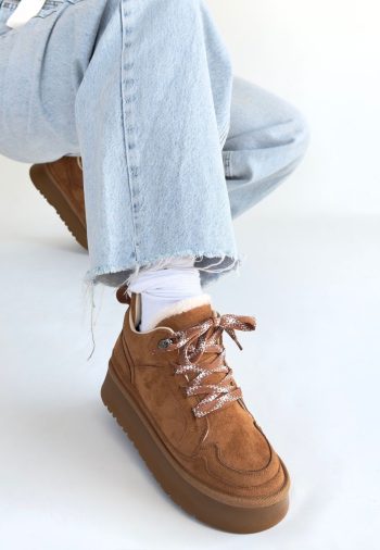 - Süet Kadın Konforlu Adım Muden Taba Bağcıklı Bot
