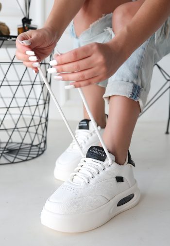 - Chris Beyaz Cilt Siyah Detaylı Bağcıklı Spor Ayakkabı
