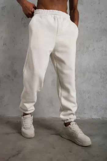 Erkek Modern Stil Beyaz Üç İplik Alt Eşofman Lastikli