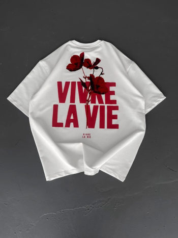 Baskılı Kadın Salaş Stil Beyaz Oversize Bisiklet Yaka Tişört