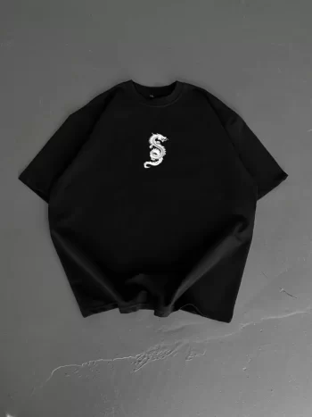 Baskılı Kadın Salaş Stil Siyah Oversize Bisiklet Yaka Tişört