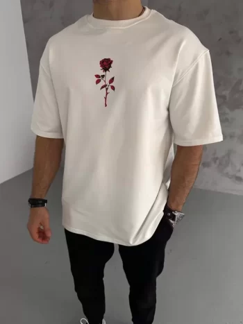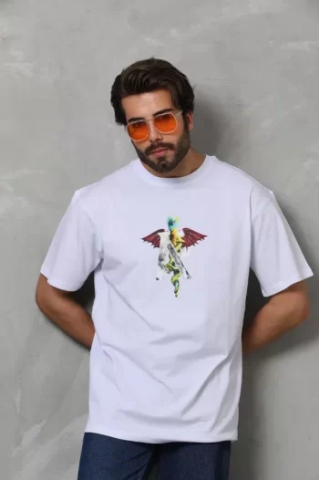 Baskılı Unisex Günlük Stil Beyaz Soft Cotton Dokulu Oversize Tişört