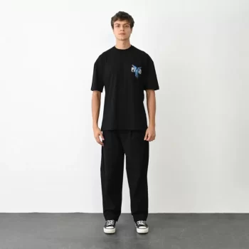 Baskılı Unisex Günlük Stil Siyah Midnight Koleksiyonu Oversize Tişört