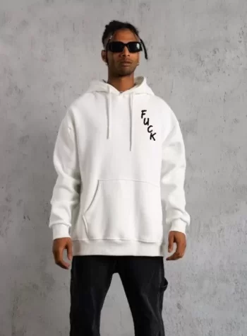Desenli Kadın Beyaz Retro İllüstrasyon Uzun Kol Kapüşonlu Sweatshirt