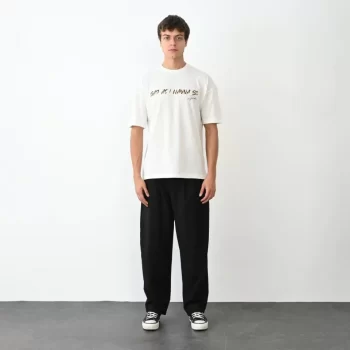 Grafik Baskılı Unisex Minimalist Siyah Oversize Bisiklet Yaka Tişört