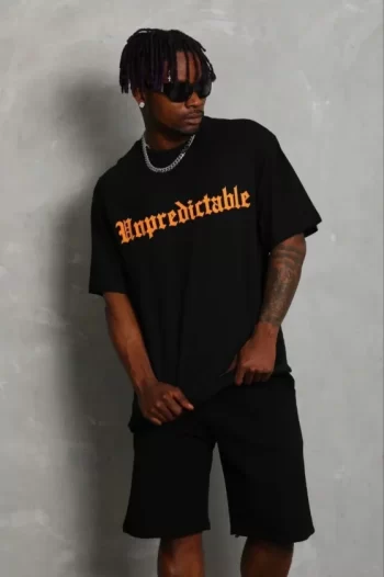 Baskılı Erkek Siyah Sporda Günlük Hayata Giyilebilir GYM Oversize Bisiklet Yaka Tişört