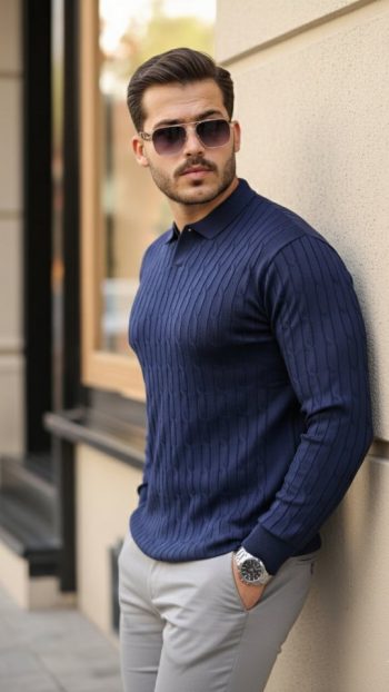 - Erkek Modern Stil Düğme Yakalı Triko