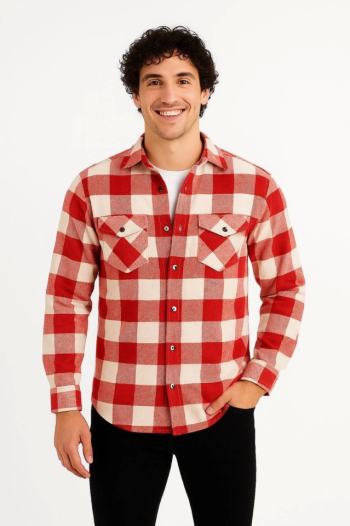 Erkek Kırmızı Uzun Kollu Oduncu Gömlek