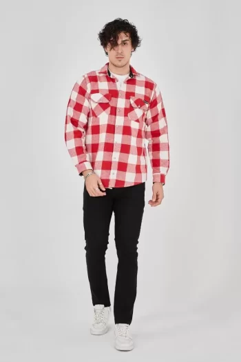 Erkek Retro Kareli Klasik Pembe Pamuklu Oduncu Gömlek